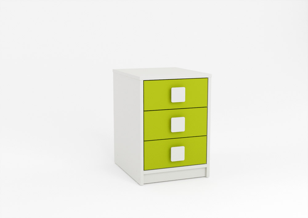 Небольшая, компактная тумба с тремя ящиками отлично дополнит мебельный комплект.