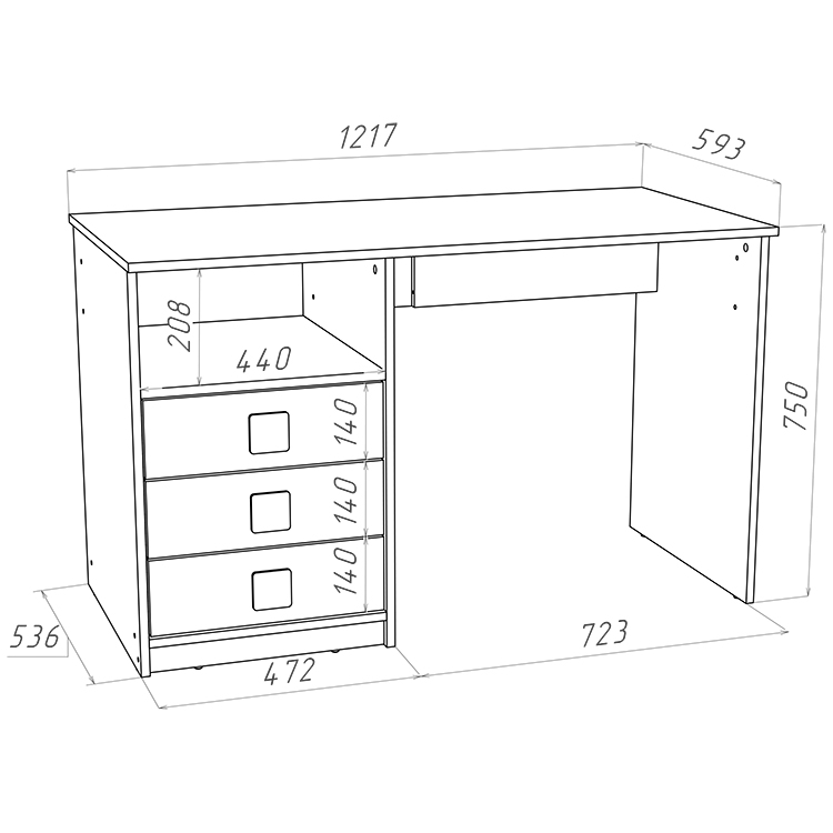 Три выкатных ящика стола обеспечат удобное хранение канцелярии,письменных,учебных и прочих принадлежностей.