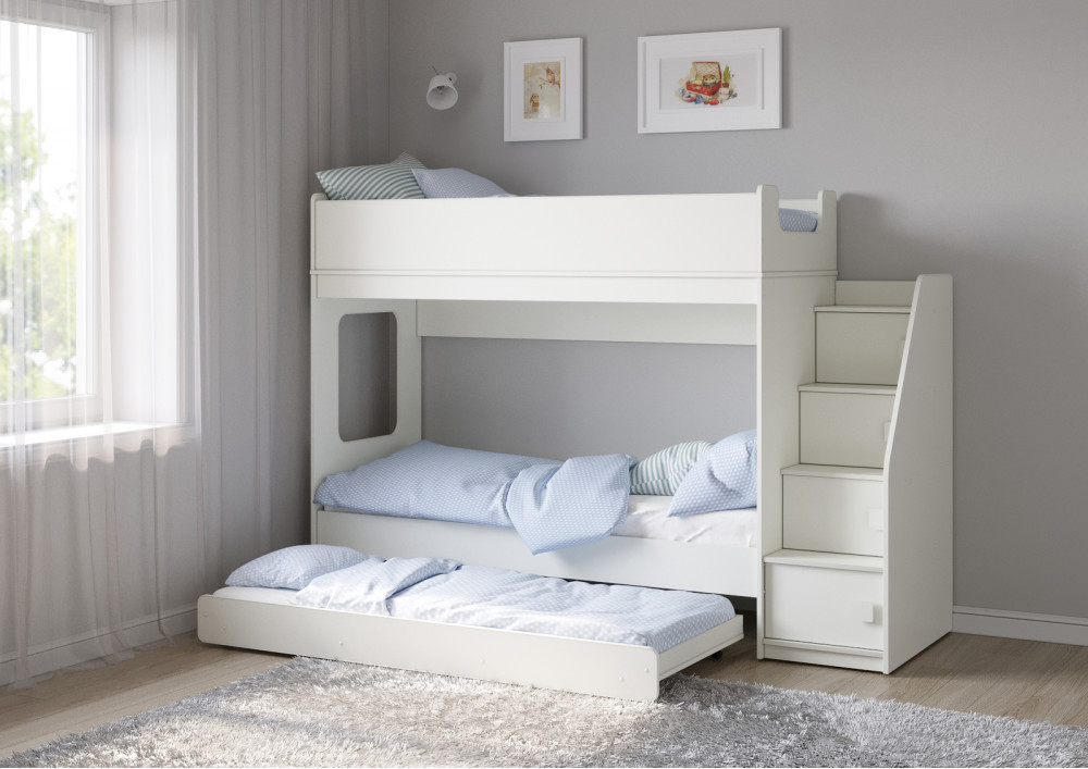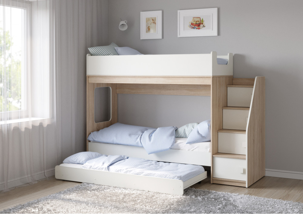 Третье спальное место 1750х750 или 1600х750 выдвижной ярус - представлен большим выкатным ящиком, спроектированным таким образом, что может быть использован и как ящик для хранения вещей, и как отдельное спальное место!